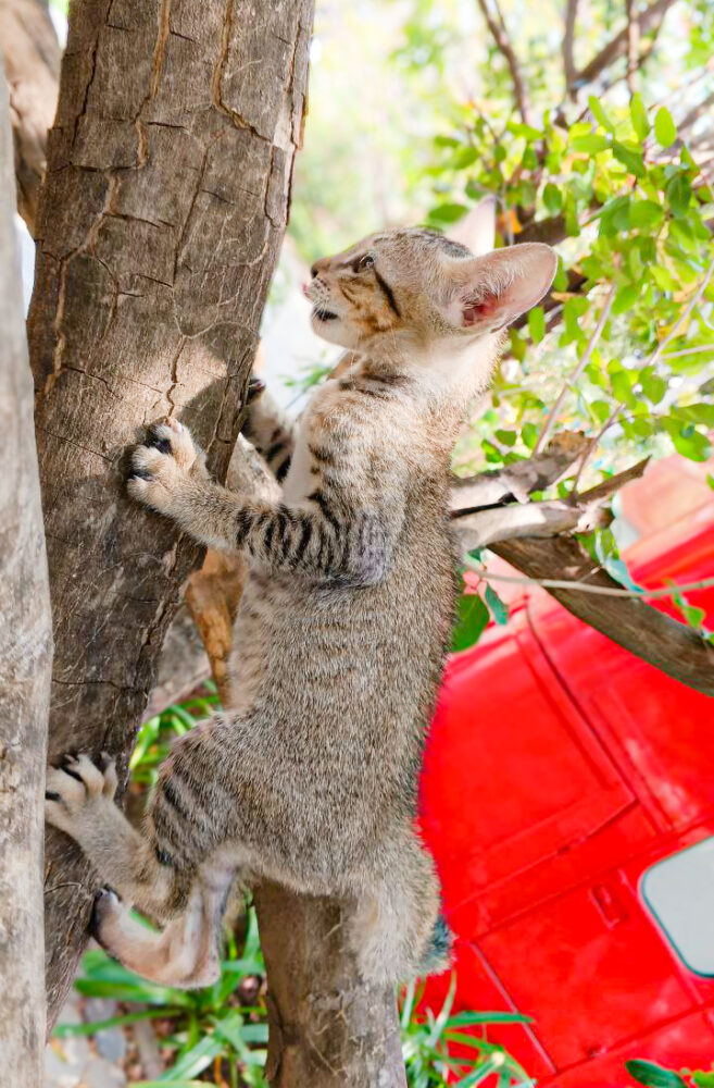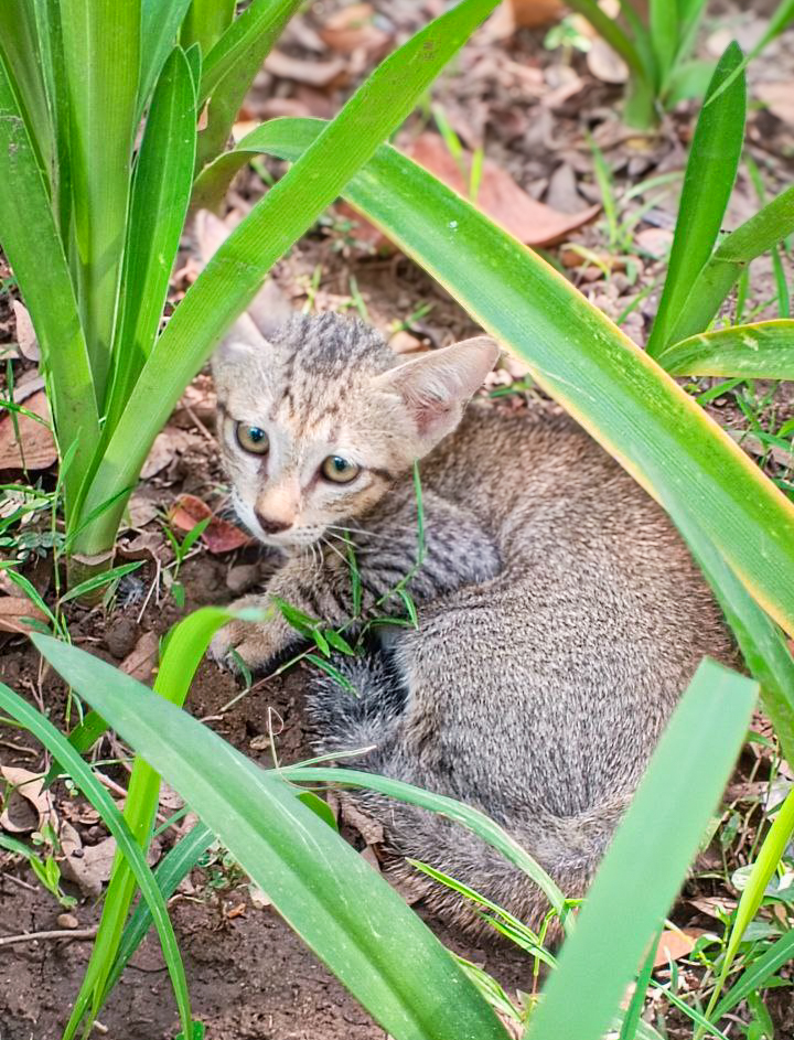 This handsome tabby boy is full of curiosity and loves exploring his surroundings! 🌿🐾