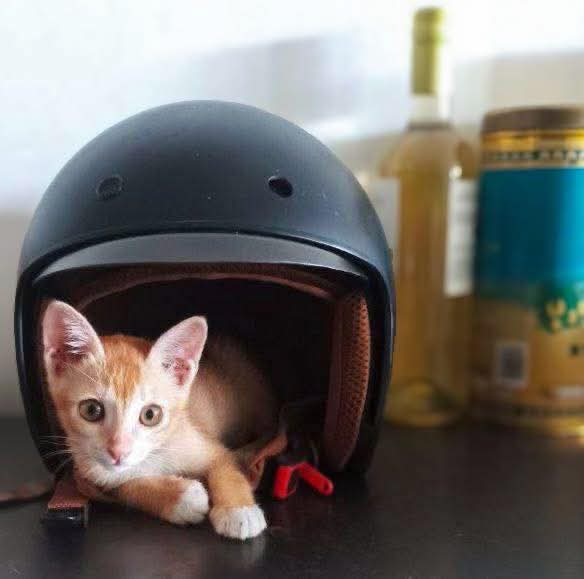 This small and adorable ginger kitten loves sleeping in a helmet 🥰