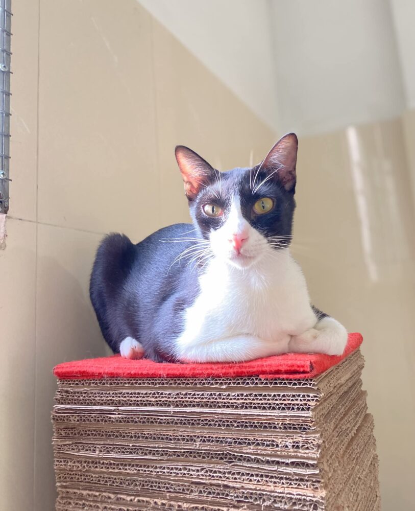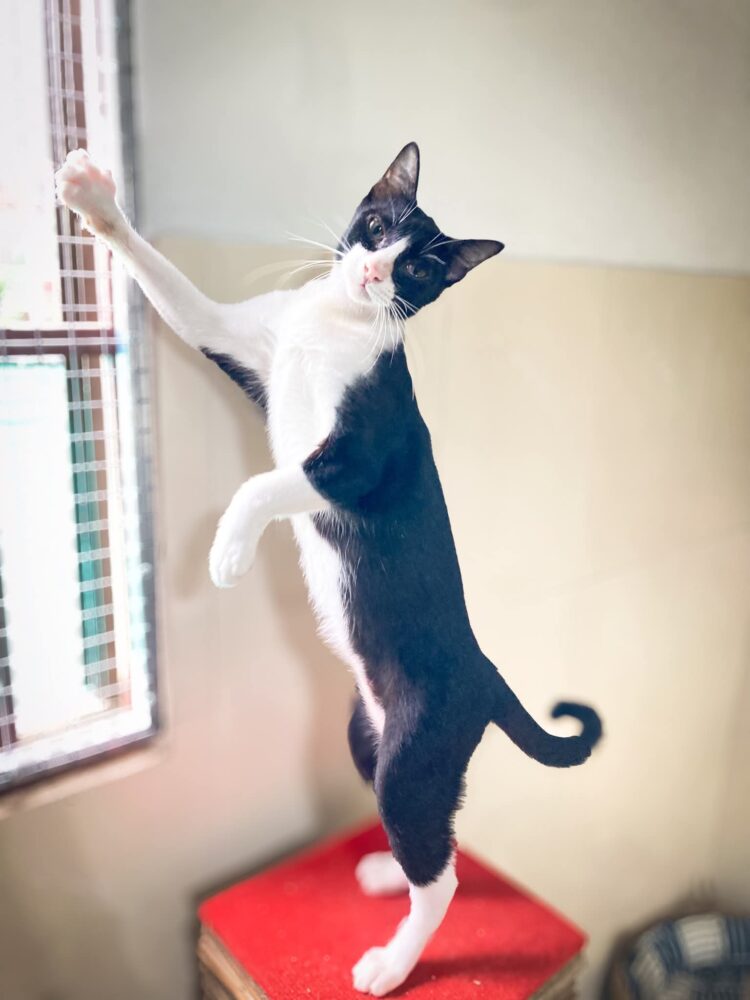 This adorable tuxedo boy is Zorro, he is super energetic and very affectionate. 🥰 He is very social and gets along well with other cats.😸